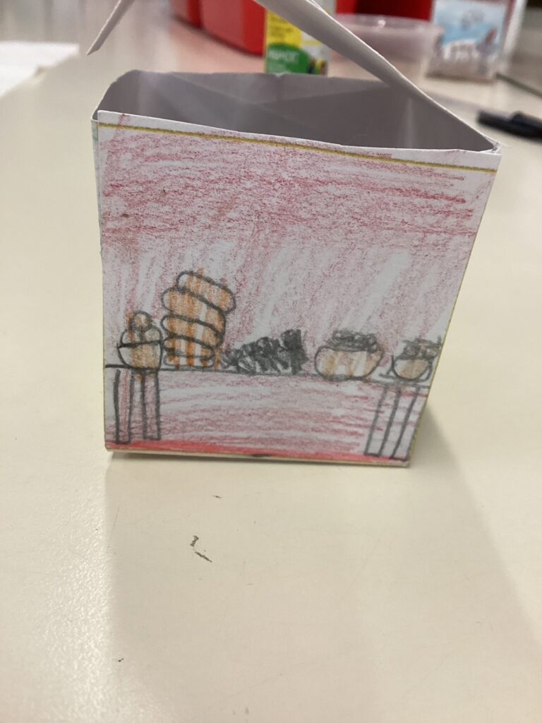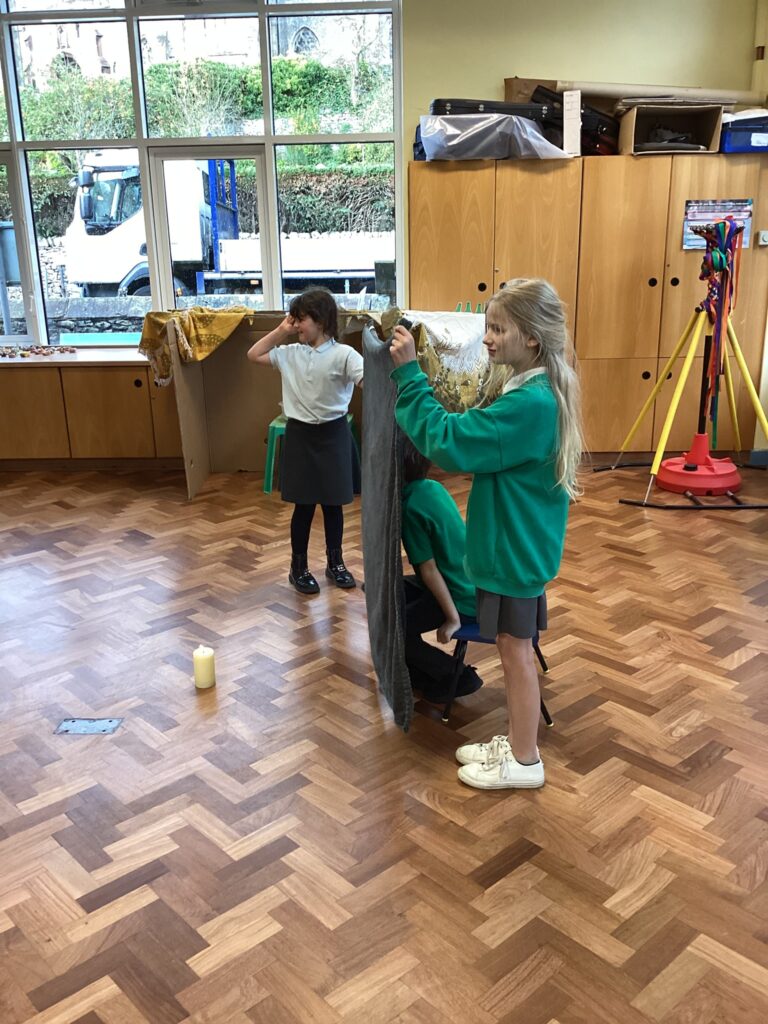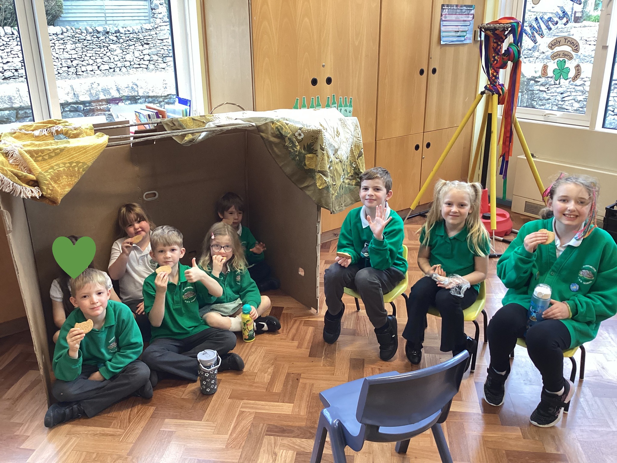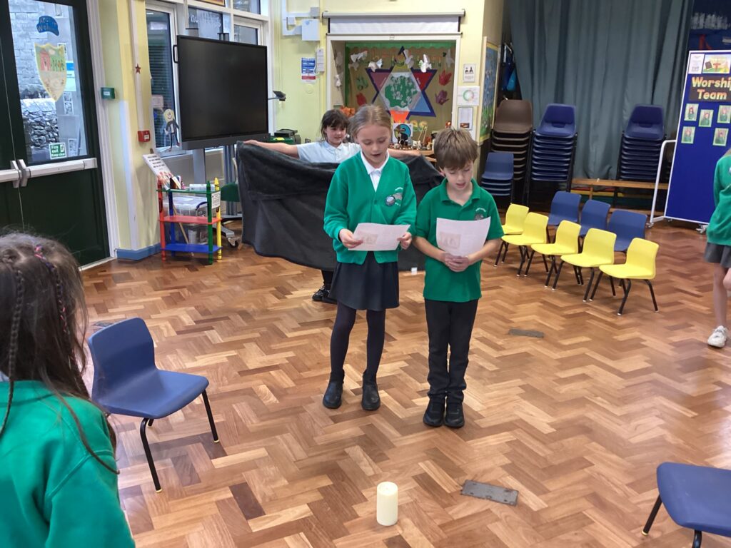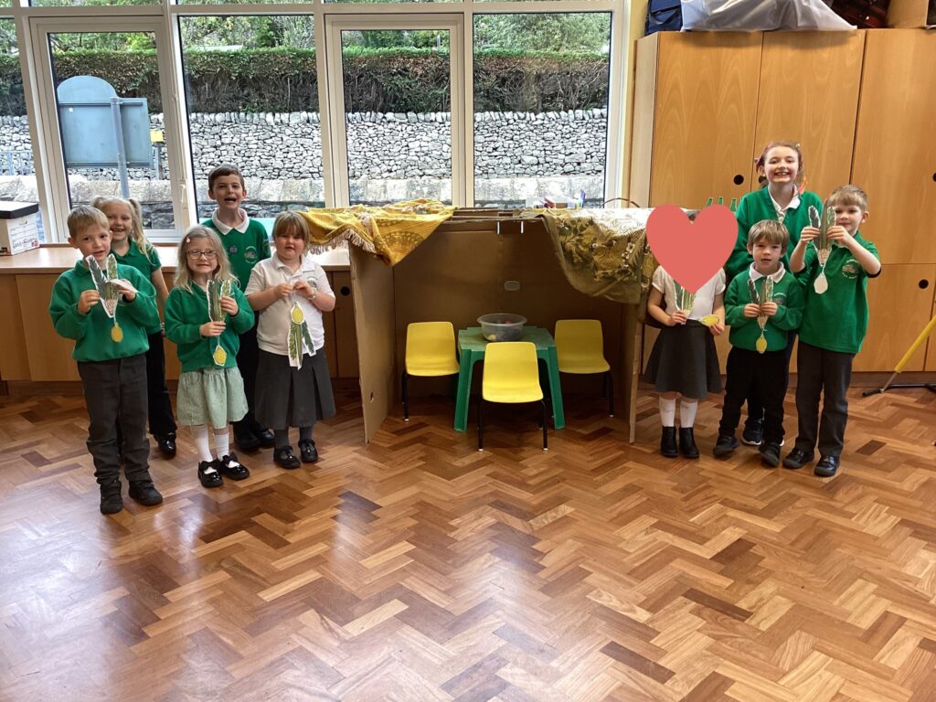 We were very excited to build our own Sukkah to help us think about the Jewish harvest festival of Sukkot. We enjoyed a drink and a biscuit sat in the Sukkah to think about how Jewish people have meals in the Sukkah during the week of Sukkot.