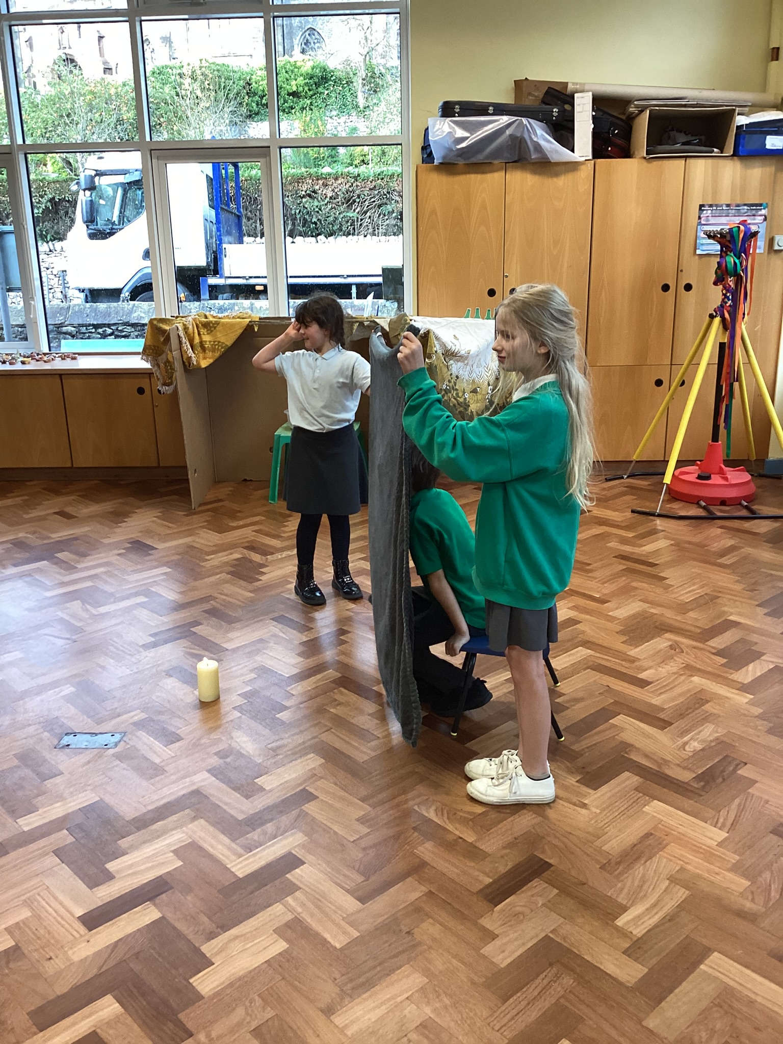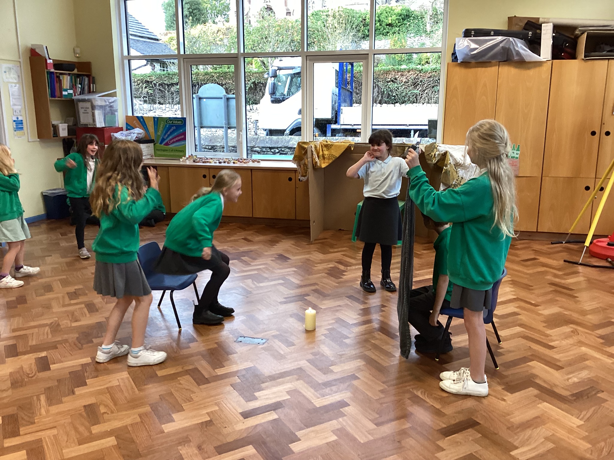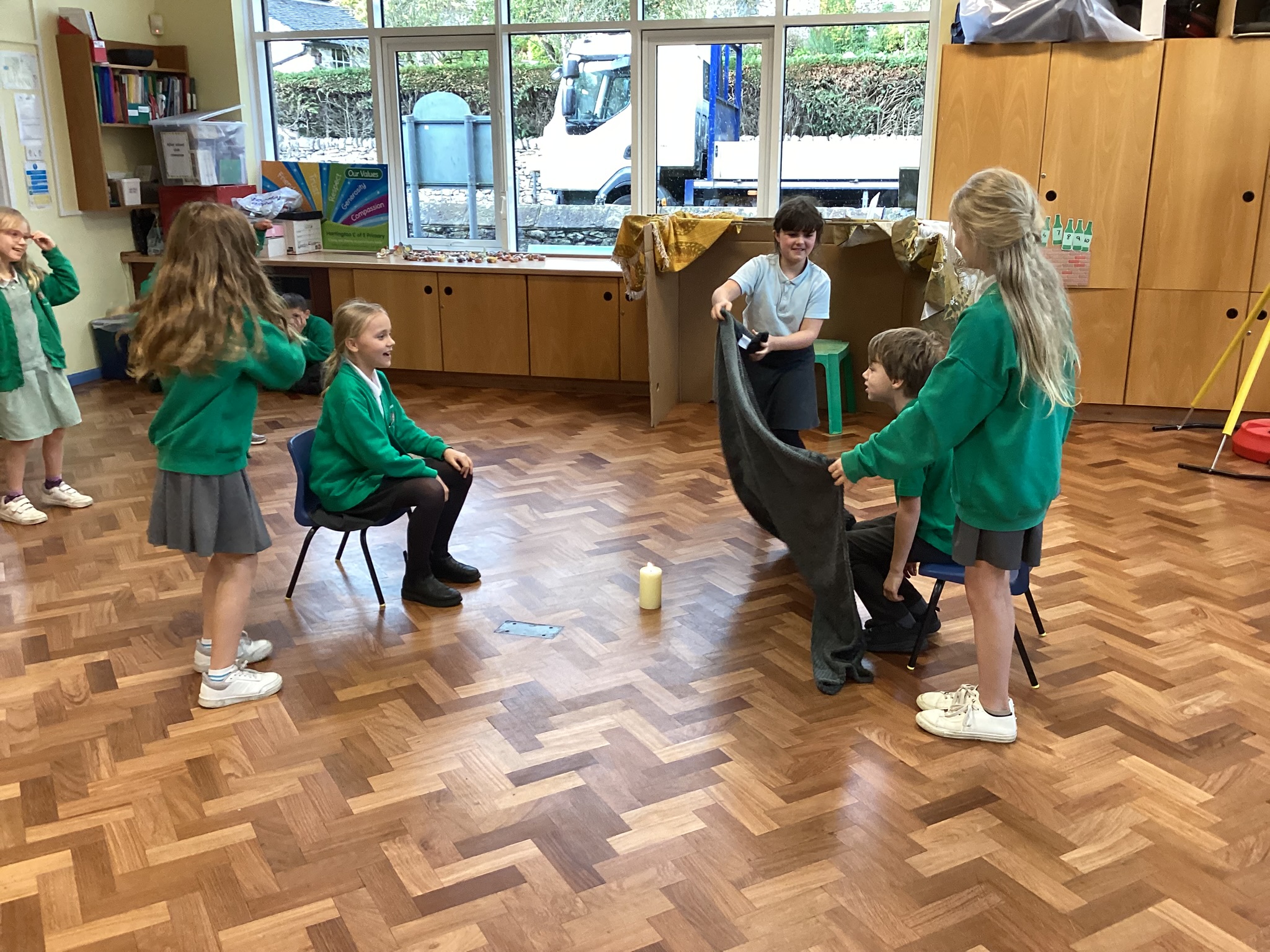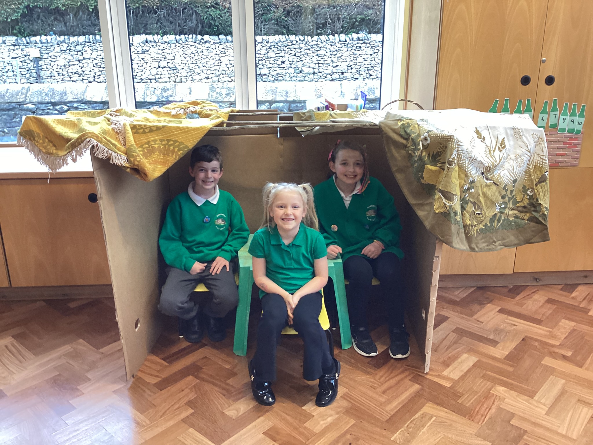 We were very excited to build our own Sukkah to help us think about the Jewish harvest festival of Sukkot. We enjoyed a drink and a biscuit sat in the Sukkah to think about how Jewish people have meals in the Sukkah during the week of Sukkot.