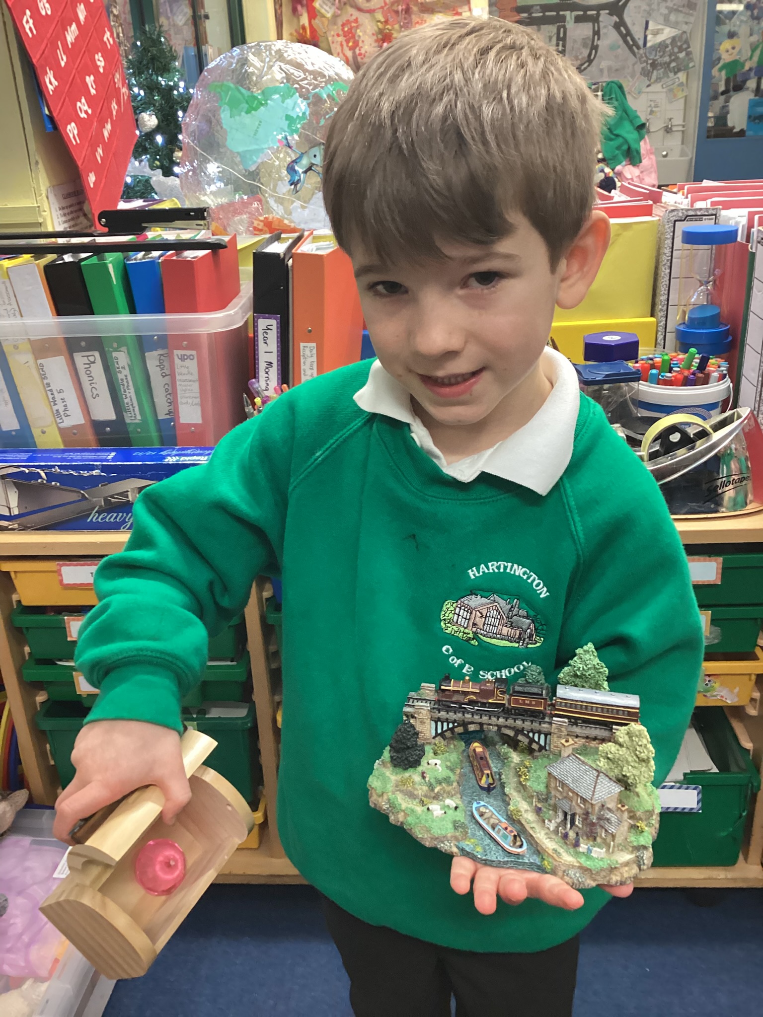 In thinking about looking after our wonderful world the reception children took their view finders outside to find things they found interesting, puzzling or wonderful in the natural world. They found flowers, tadpoles, the pond and insect hotel. This extended to think about things that make the world happy and what makes it sad and how we can look after the world.