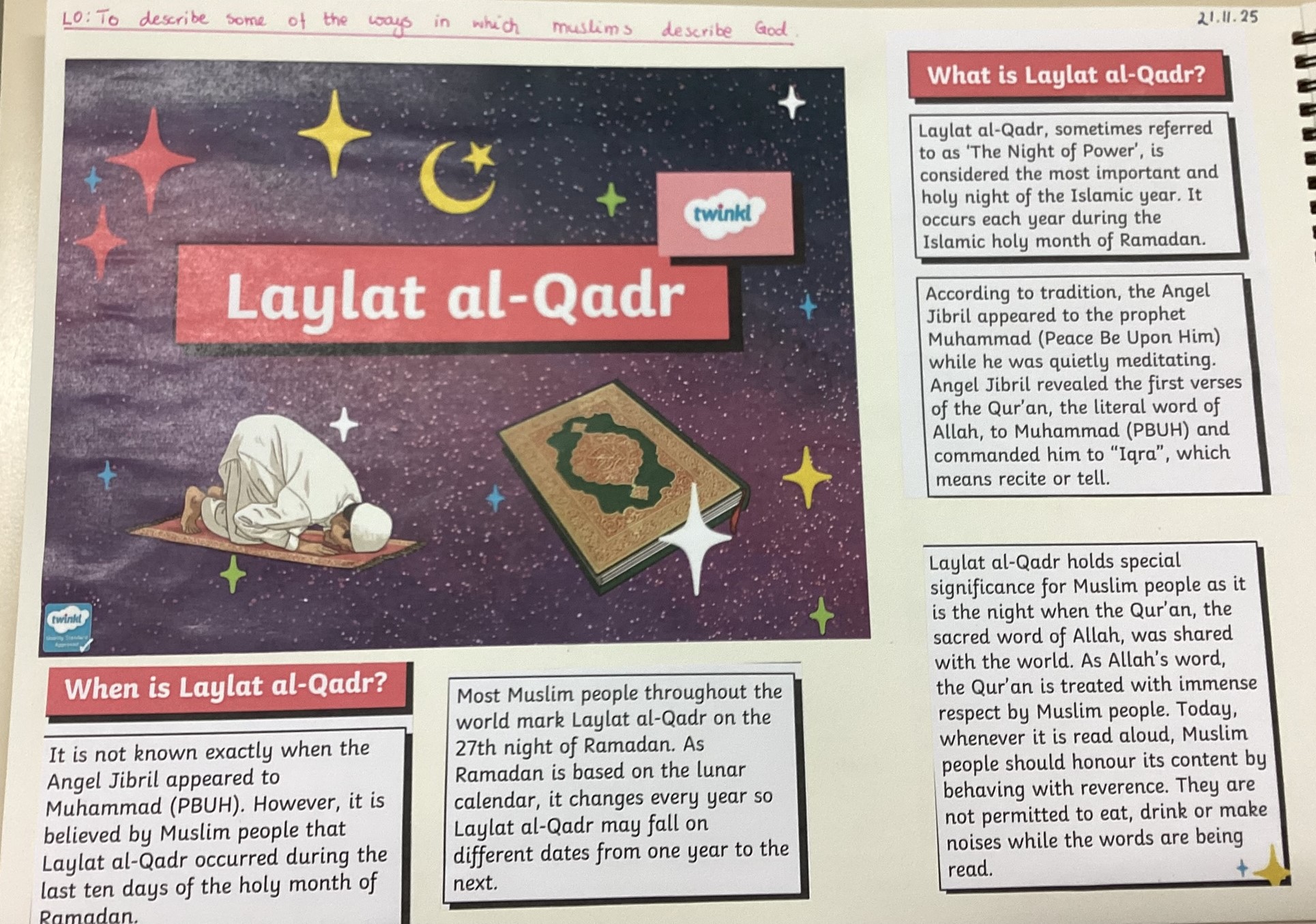 This half-term, we explored what different people believe about God, comparing theist, atheist, and agnostic perspectives. We studied the Christian concept of the Holy Trinity and how Muslims describe God through His 99 names and the concept of Tawhid. By identifying similarities and differences between Islam, Christianity, and Hinduism, we gained a better understanding of how diverse traditions visualise the divine.
