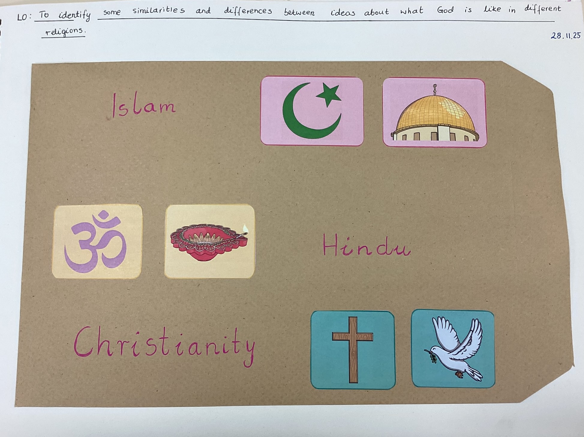 This topic was concluded by thinking about someone who has put their religious beliefs into action to help the world and others within it. We used the example of Mother Theresa, learning who she was and the impact her religious beliefs had on her life and the actions she took.
